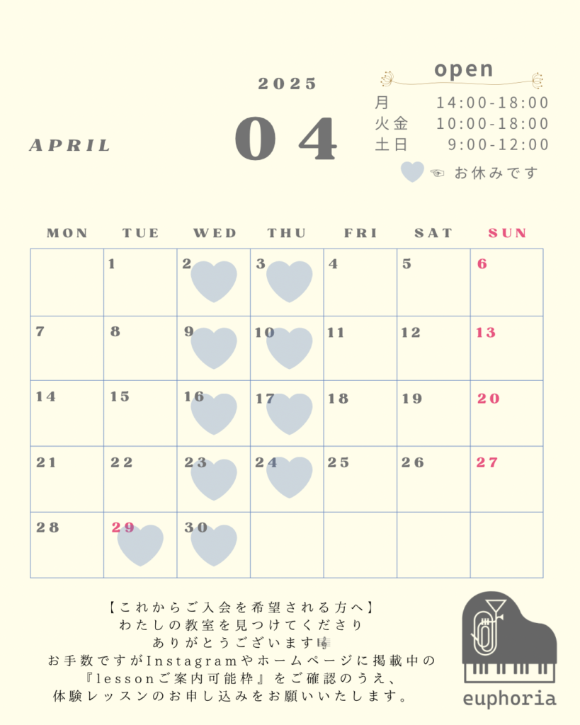 4月のスケジュール🗓️+今後のレッスン日について