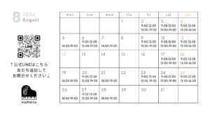 【スケジュール】8月のレッスン